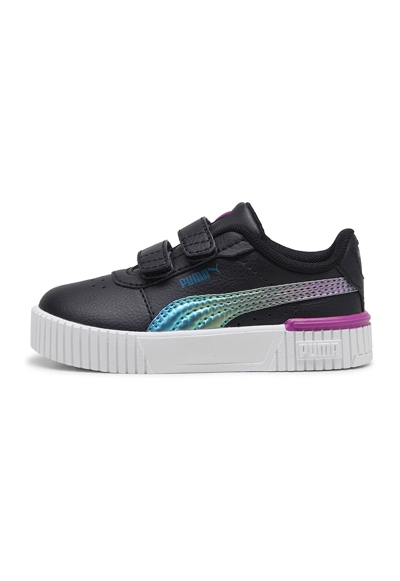 Pantofi sport de piele ecologica cu velcro Carina 2.0 - Albastru pastel/Negru/Roz fandango