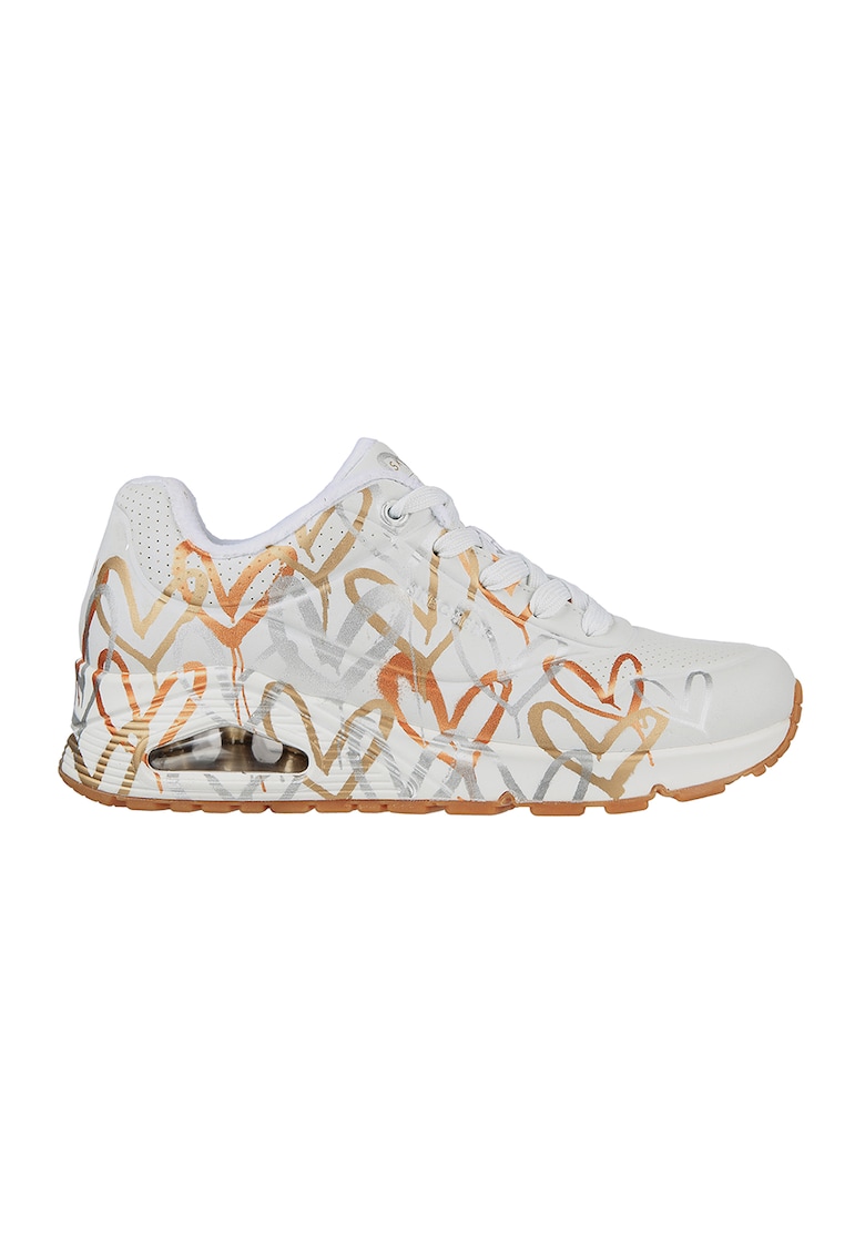 Pantofi sport de piele ecologica Uno-Metallic Love - Alb/Auriu/Argintiu