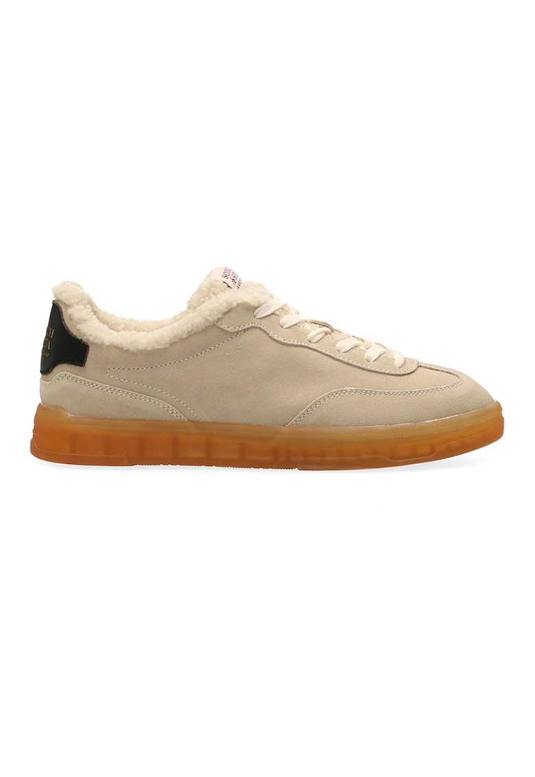 Pantofi sport de piele intoarsa cu garnituri de lana - Maro nisip