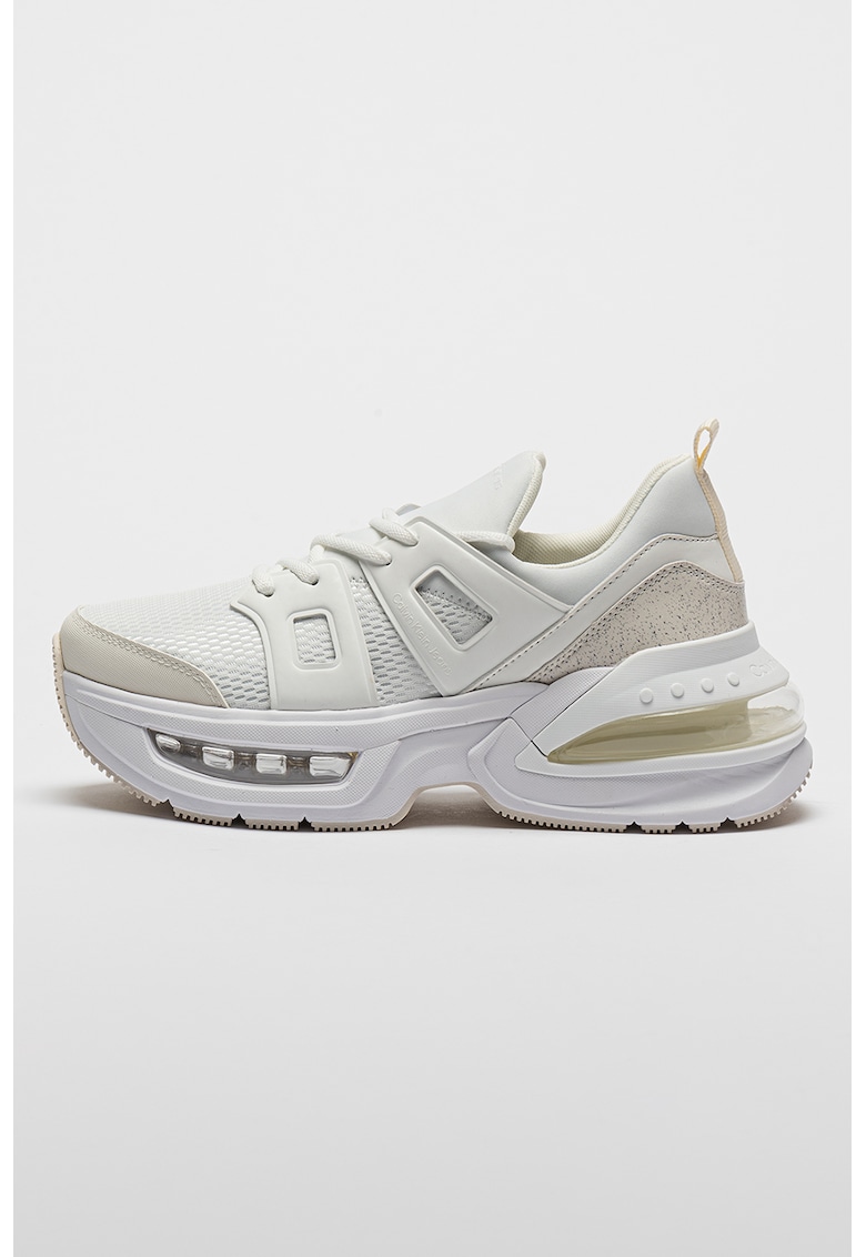 Pantofi sport demi-wedge cu aspect masiv - Alb fildes/Alb optic