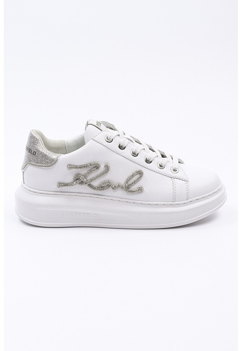 Pantofi sport din pieke cu logo stralucitor - Alb/Argintiu