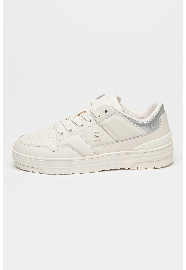 Pantofi sport din piele cu detaliu logo - Alb fildes/Argintiu