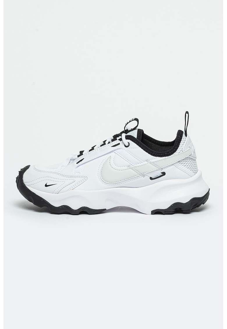 Pantofi sport din piele ecologica cu insertii din plasa - Alb/Negru