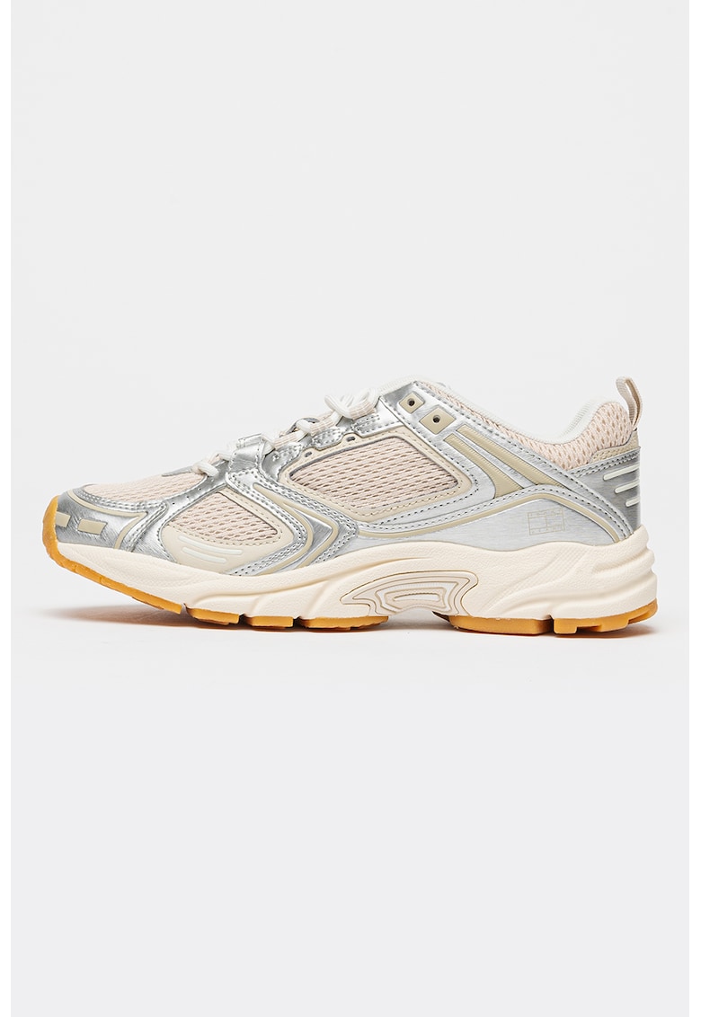 Pantofi sport din piele ecologica si plasa Archive'97 - Bej/Argintiu