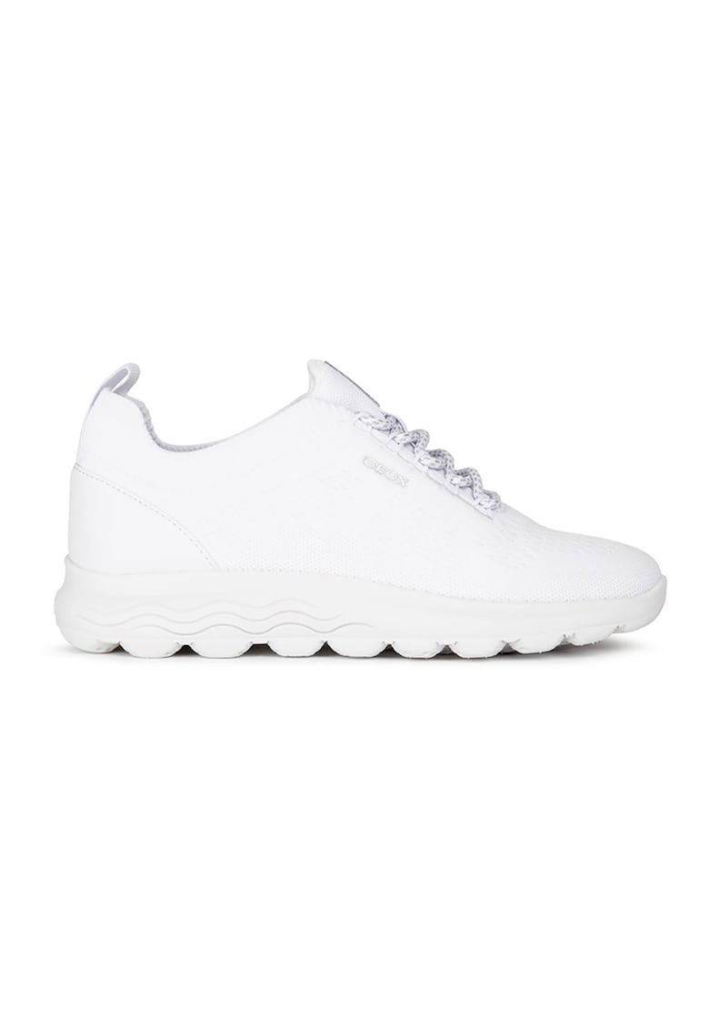 Pantofi sport din plasa tricotata cu detaliu de piele - Alb