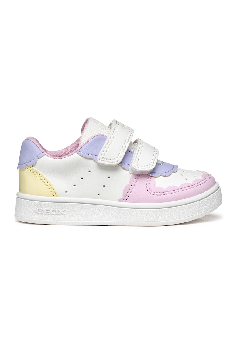 Caracteristici Tip produs: tenisi Culoare: alb - roz deschis Imprimeu: uni Stil: casual Material: piele ecologica Sistem inchidere: velcro Tip talpa: plata Colectie: primavara - vara - toamna - iarna Tehnologie: geox respira® Compozitie Partea superioara: piele ecologica Material interior: textil Ma...