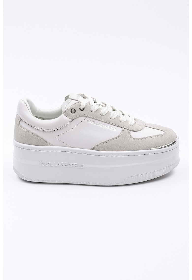 Pantofi sport flatform din piele si piele intoarsa - Alb murdar