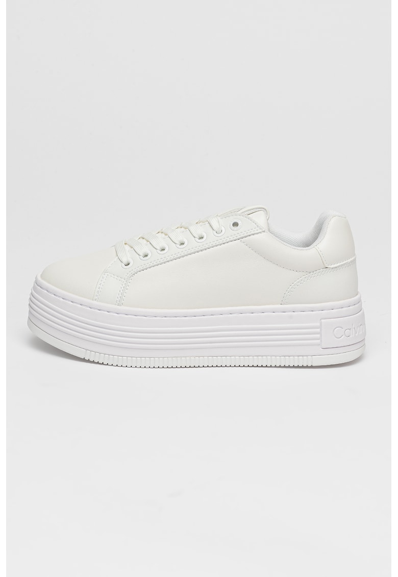 Pantofi sport low-cut din piele cu platforma - Alb