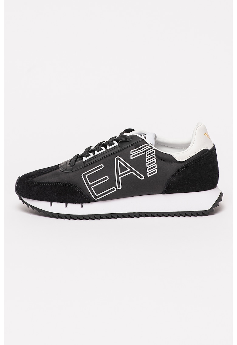 Pantofi sport low-top unisex cu garnituri din piele intoarsa - Alb/Negru