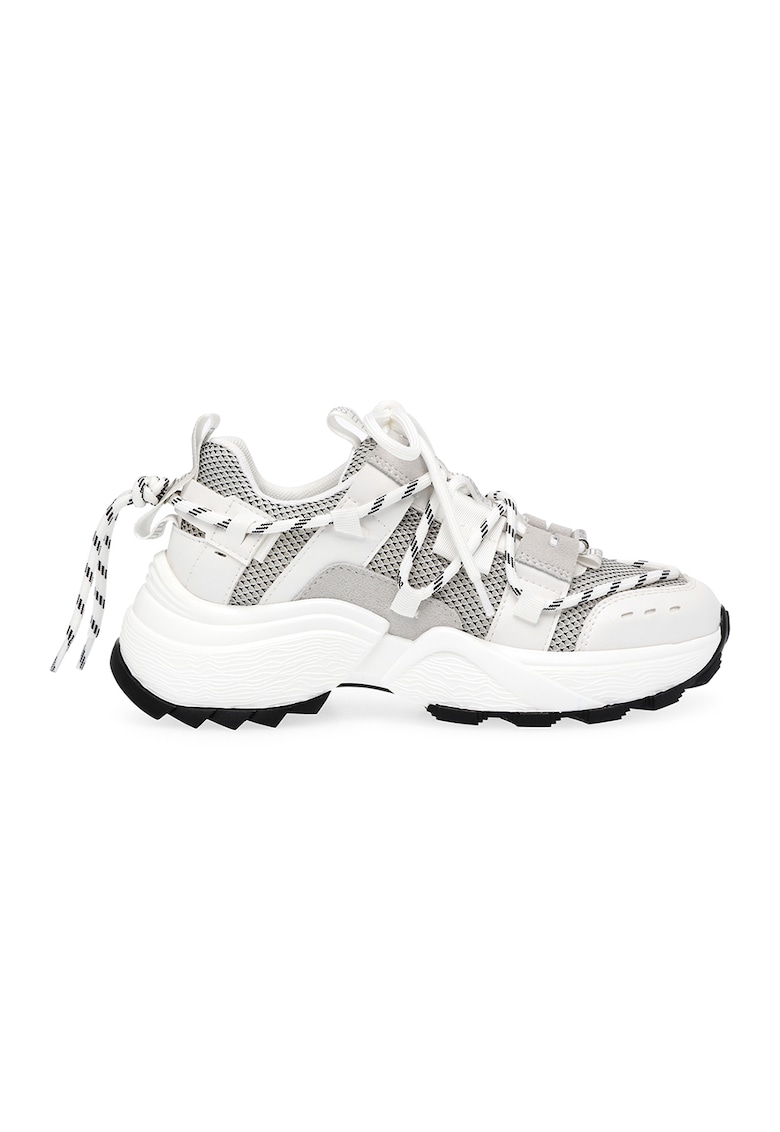 Caracteristici Culoare: alb - gri cenusiu Varf: rotund Imprimeu: cu model Tip talpa: wedge Detalii: aspect colorblock Material: textil - piele intoarsa - piele ecologica Sistem inchidere: siret Compozitie Partea superioara: textil - alte materiale - piele intoarsa Material interior: material textil Material talpa: alte materiale Dimensiuni Platforma spate: 6 cm