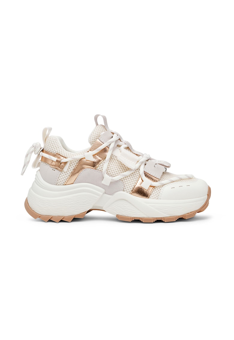Pantofi sport masivi cu garnituri de plasa Tazmania - Auriu/Alb fildes
