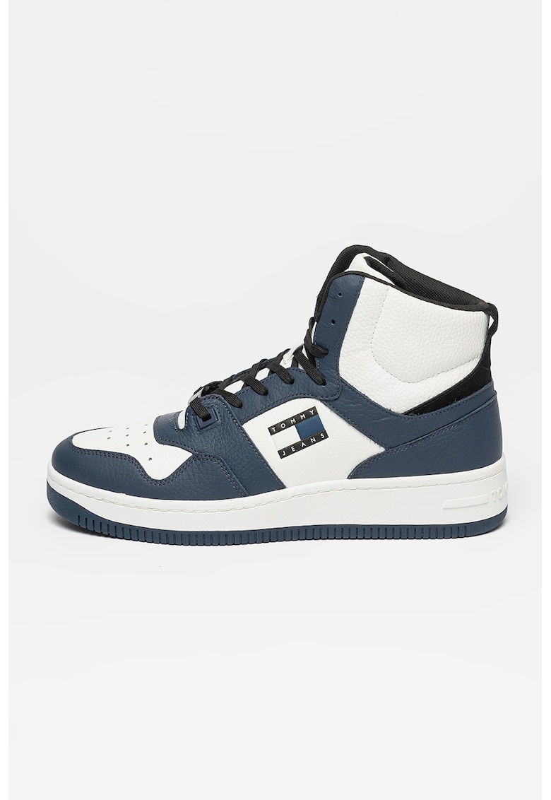 Pantofi sport mid-high de piele cu detalii contrastante - Alb/Bleumarin