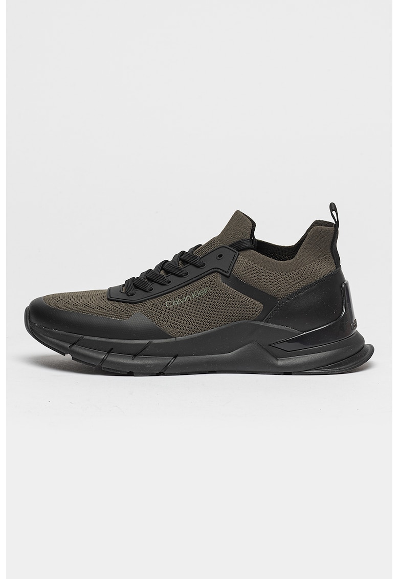 Pantofi sport slip-on cu insertii de plasa - Negru/Verde masliniu