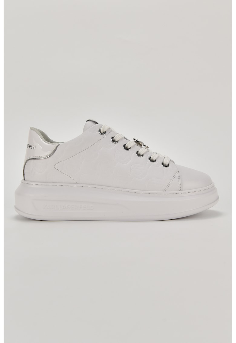 Pantofi sport wedge de piele - Alb/Argintiu