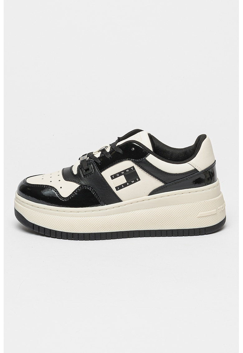 Pantofi sport wedge de piele cu garnituri contrastante - Alb/Negru