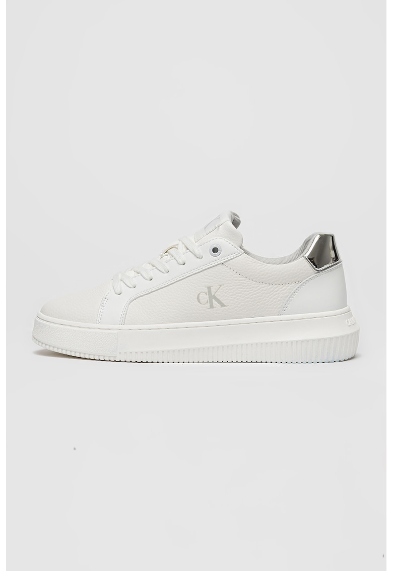Pantofi sport wedge din piele - Alb optic/Argintiu