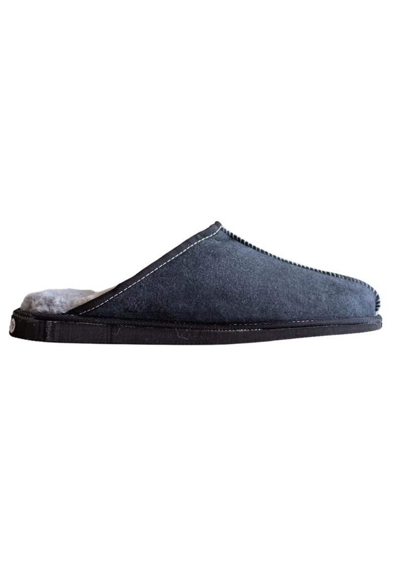 Papuci barbati lana naturala - piele - albastru - talpa din cauciuc - set de interior-exterior -