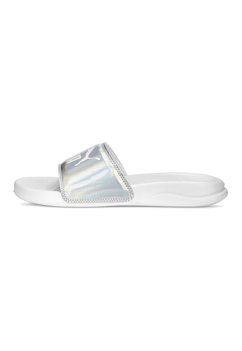 Papuci cu imprimeu logo si aspect metalic Popcat 20 - Galben pai/Albastru deschis/Argintiu