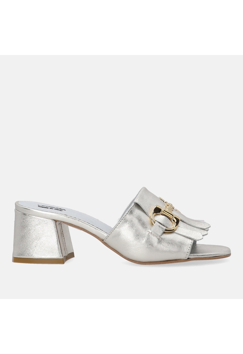 Papuci cu toc din piele cu aspect metalizat