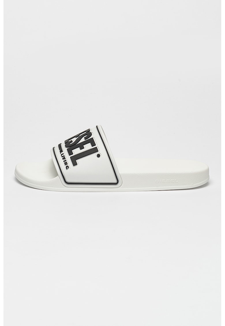Papuci de cauciuc cu logo in relief Mayemi - Alb