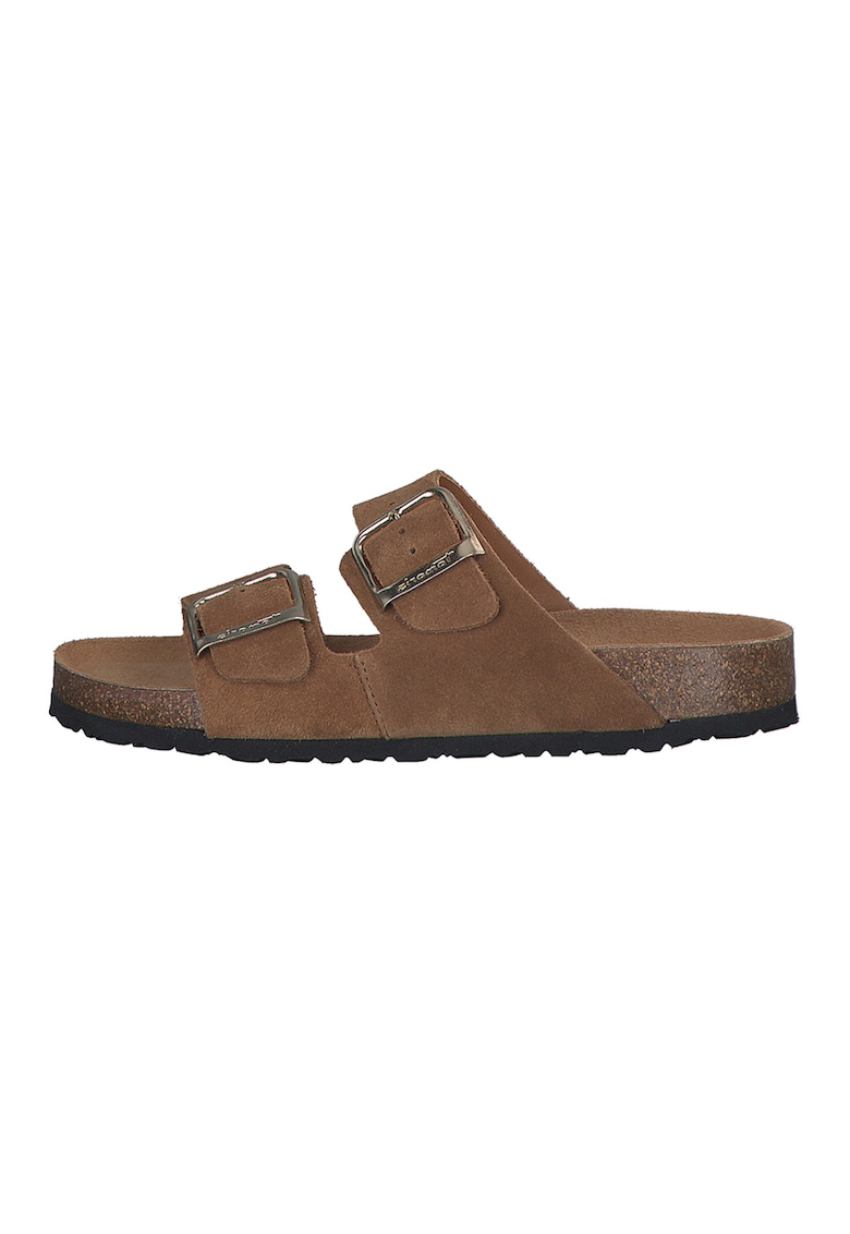 Papuci de piele intoarsa cu catarame - Maro
