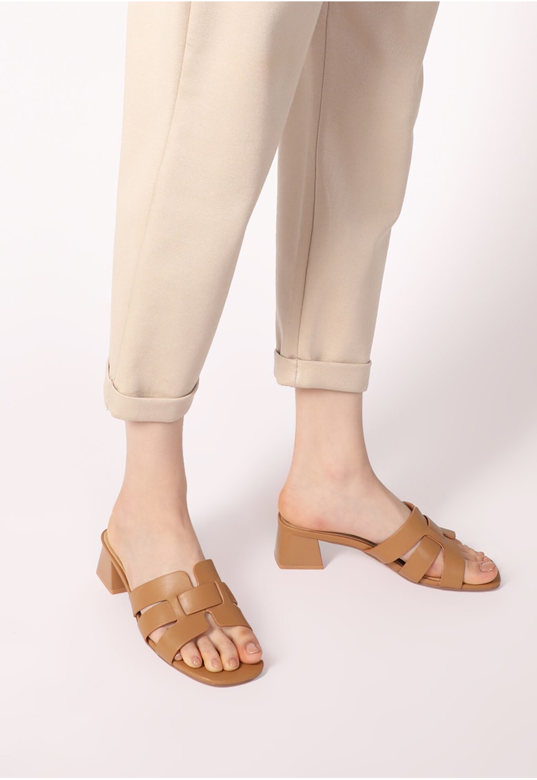 Papuci din piele cu toc masiv