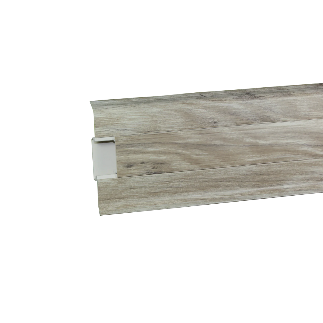 Plinta cu canal cablu pentru parchet Korner Siena 80, PVC, stejar Sines 826, canal cablu, 2500 x 23 x 52 mm