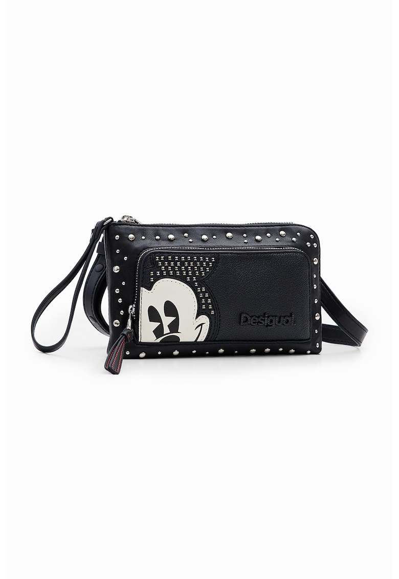 Portofel cu model Mickey Mouse si bareta detasabila - Negru