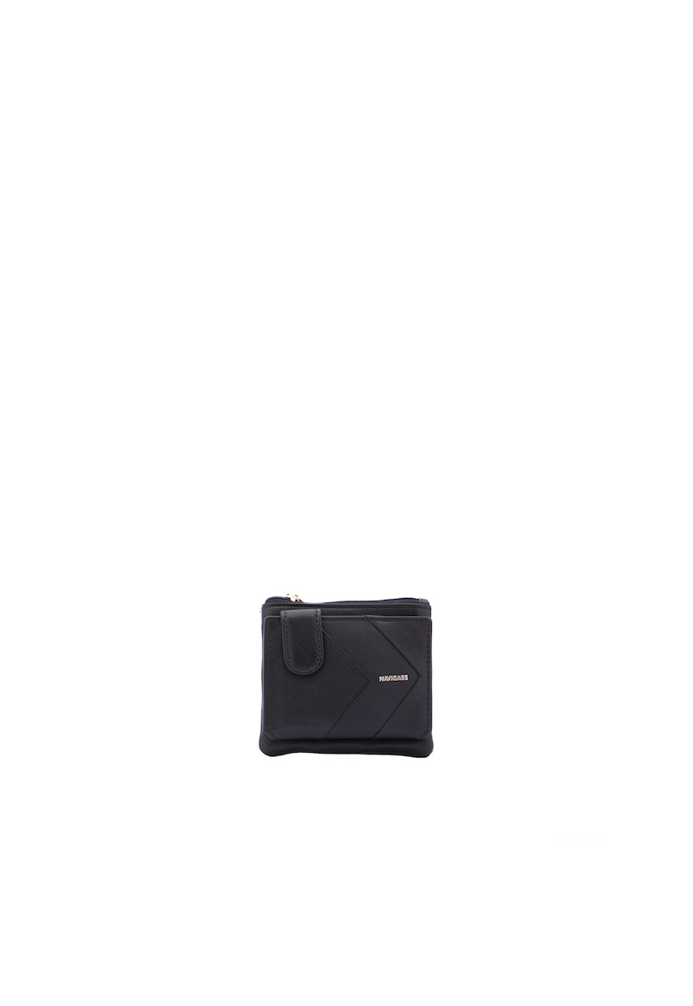 Portofel din piele ecologica cu detaliu cu logo metalic - Negru