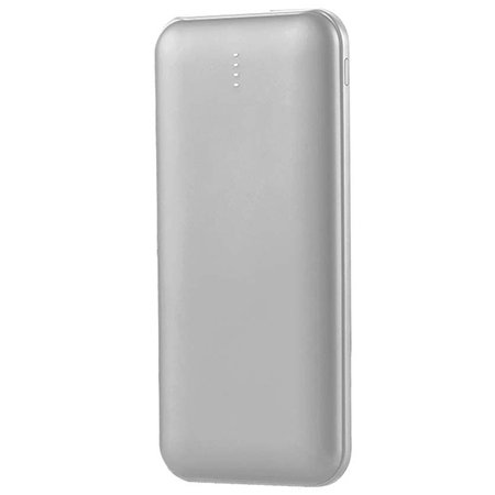 Powerbank super-slim, culoare argintieAfișaj LED încorporat cu indicator al starii baterieiBaterie de mare capacitate de 10000 mAh2 ieșiri USB, 1 i