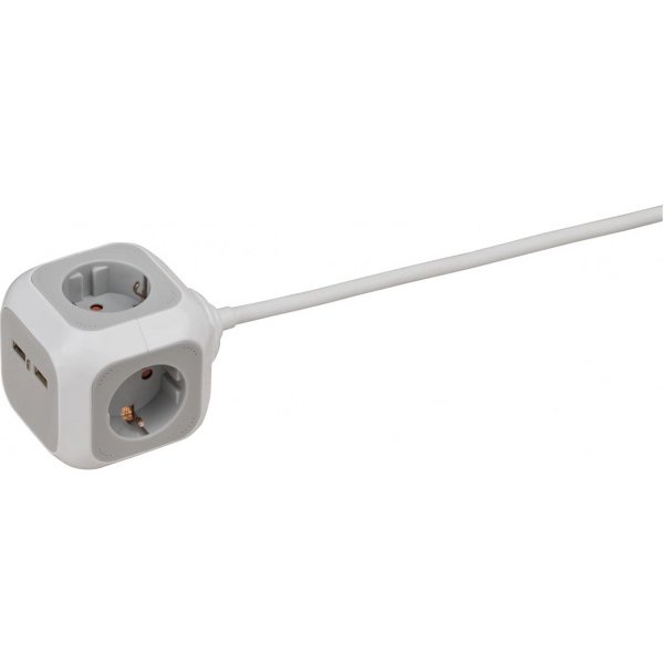 Prelungitor Brennenstuhl forma de cub cu prize si USB, 1.4m 1150100