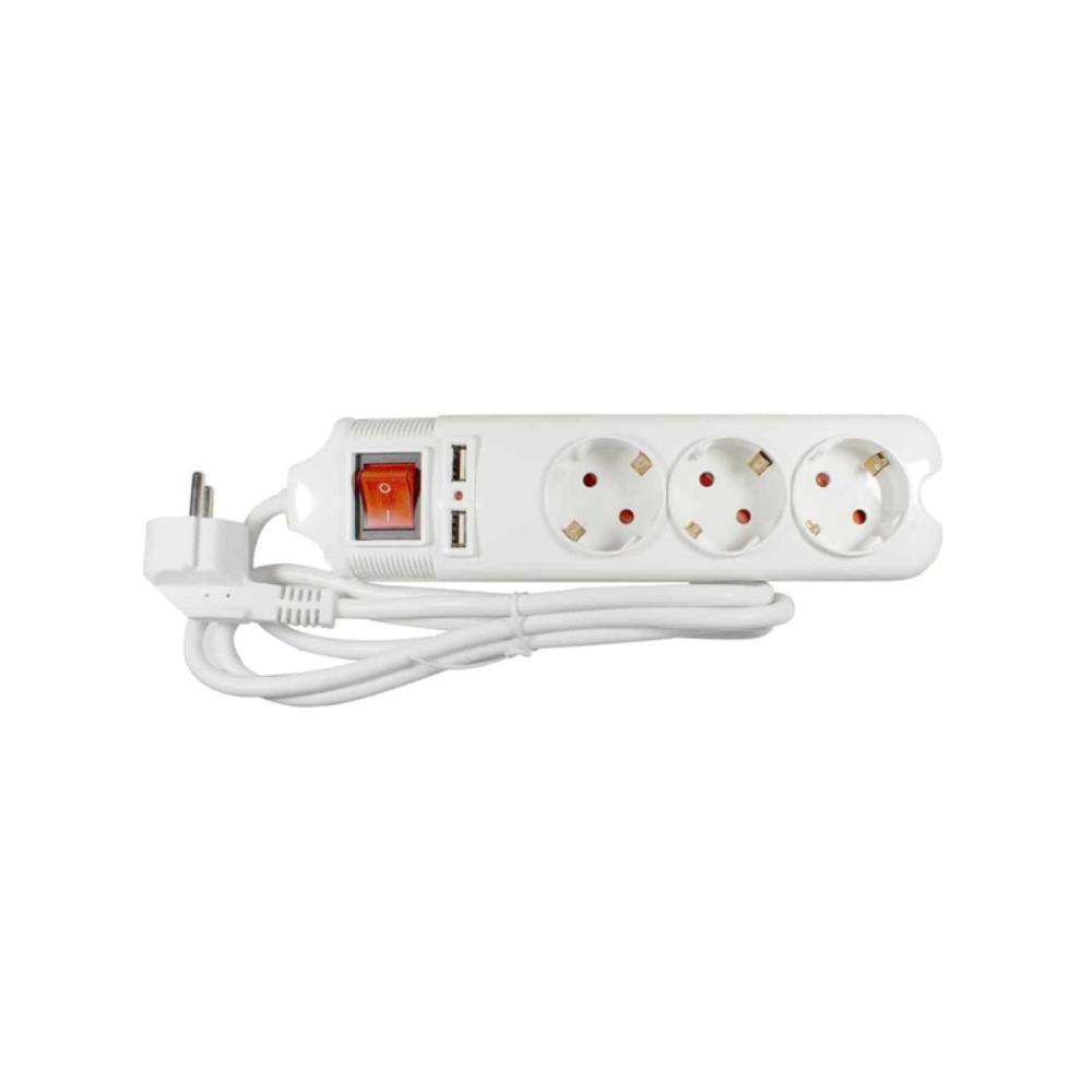 Prelungitor cu intrerupator Lohuis, 3 prize + 2USB, alb, 1.5 m