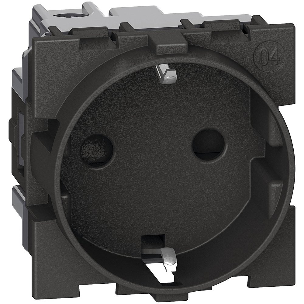 Priză standard germană 2 priză P+T 16 A 250 V cu contacte la pământ - contacte lalele ecranate - cu borne cu șurub - 2 module - negru