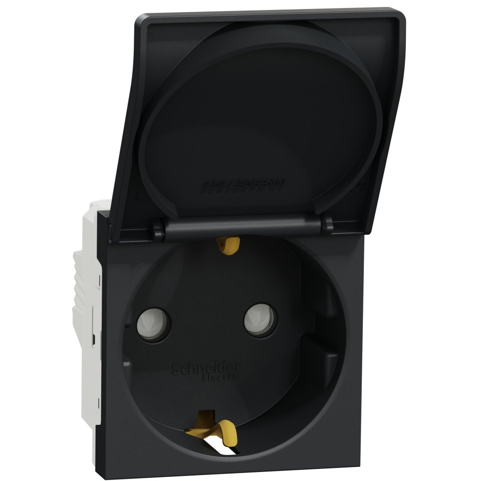 Priza 2P+E 16A, capac, obturator 2M Schneider Noua Unica NU303754TA, antracit