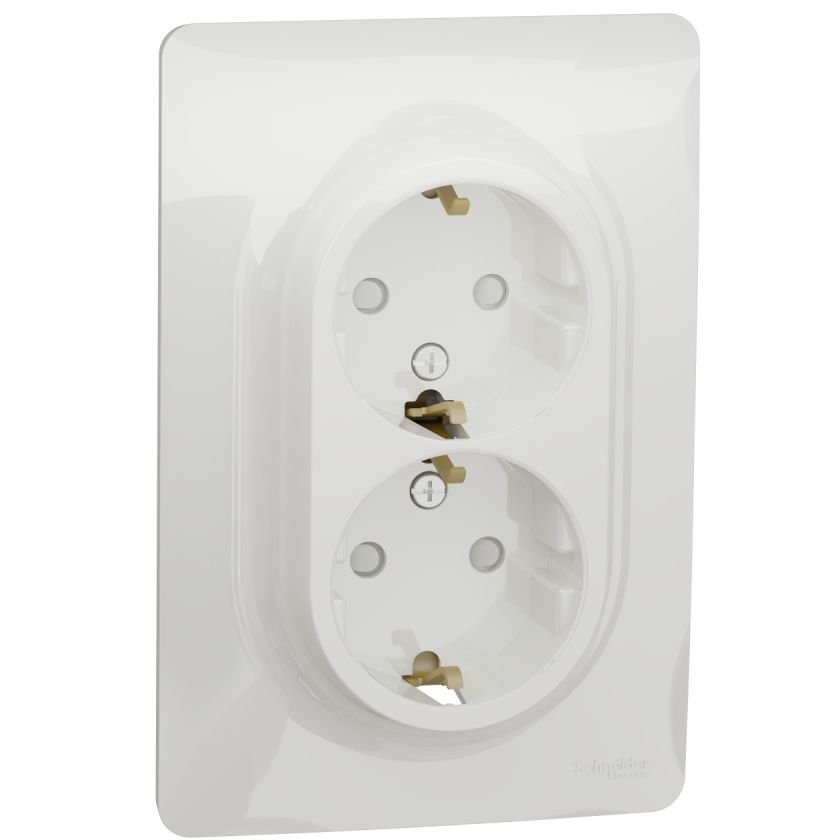 Priza dubla cu CP+obturator Schneider Noua Unica NU206718, alb