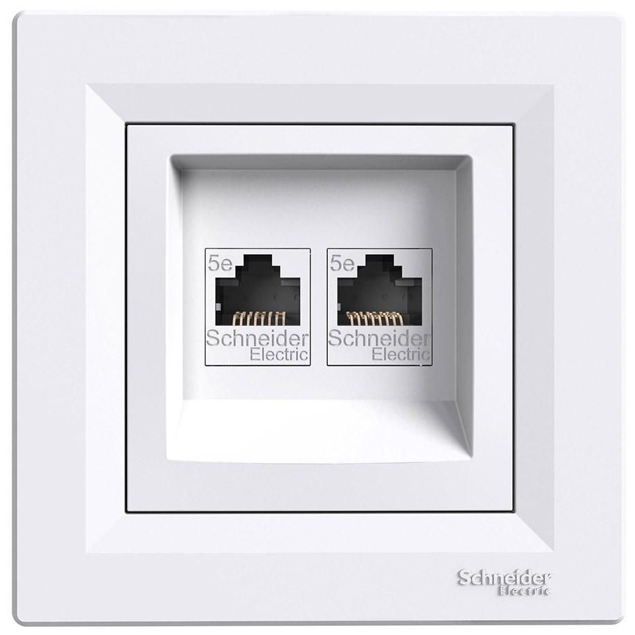 Priza dubla date utp Cat.5E Rj45 alb Schneider Asfora EPH4400121