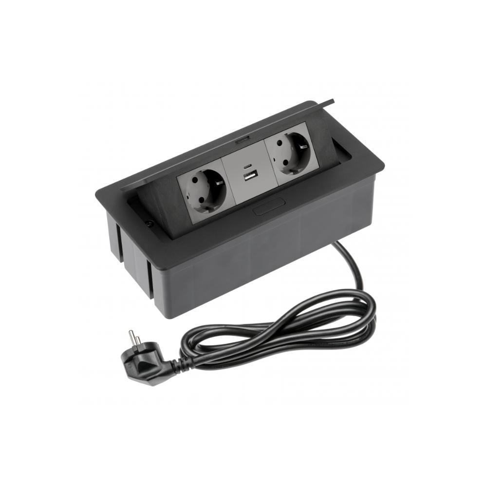 Priza incorporabila GTV, 2 prize schuko x 2 port USB, negru, 110 x 130 x 250 mm