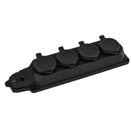 Este o priză multiplă mobilă Starke cu 4 prize, capacitate de 16A, 3500W, protecție IP44 și realizată din cauciuc negru, fără fir. Această pr