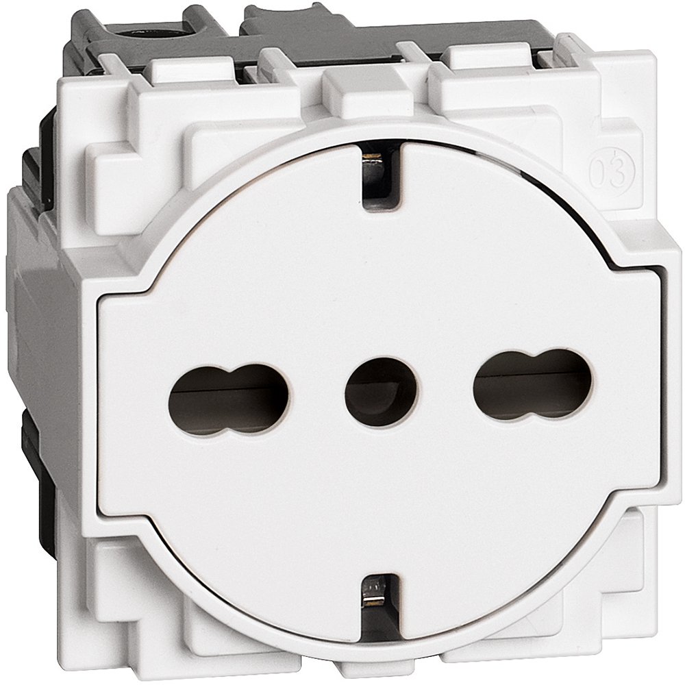 Priză plată standard german și italian. La inserarea ștecărului, elementul mobil culisează la interiorul carcasei; revine în poziția inițial?