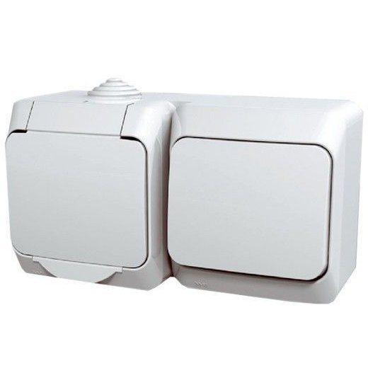 Priza schuko + intrerupator simplu PT IP44 alb Schneider Cedar WDE000500