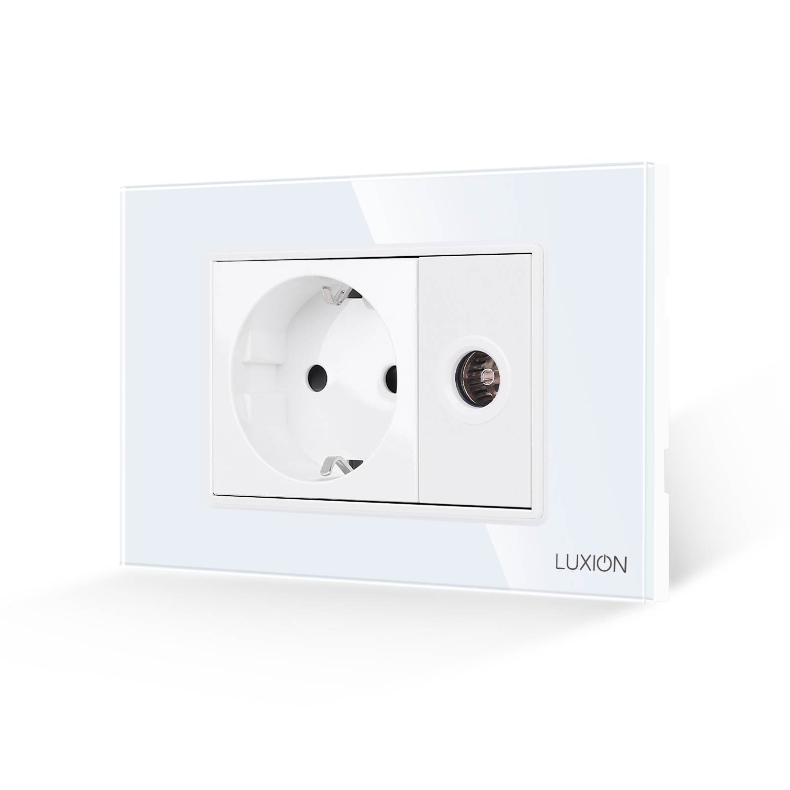 Priza Schuko + Priza TV cu Rama din Sticla LUXION, Standard Italian, 3M