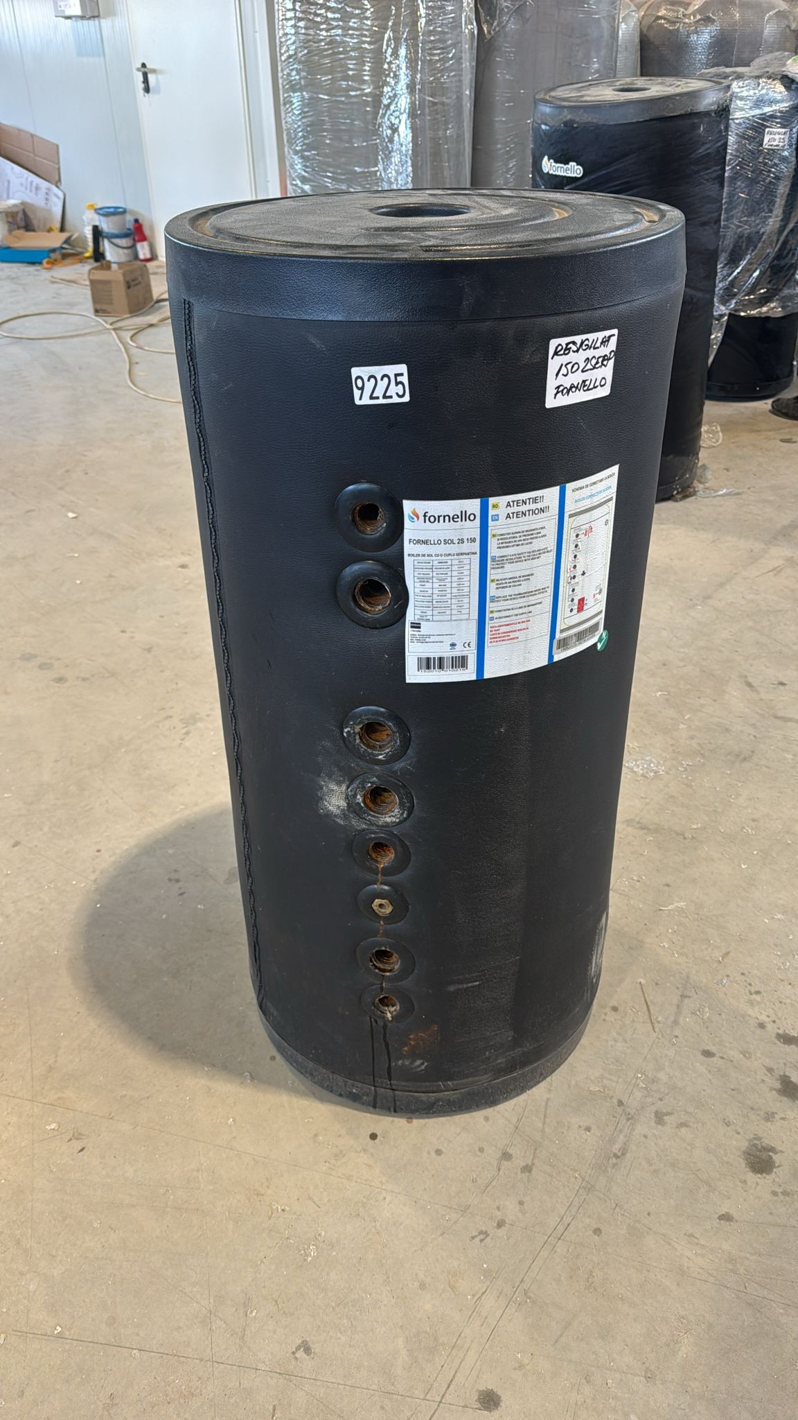 PRODUS RECONDITIONAT CU DEFECTE ESTETICE DAR IN PERFECTA STARE DE FUNCTIONARE COD 9225 !!! Boiler cu 2 serpentine FORNELLO SOL 150 LT 2S pentru centrala termica si solar montaj pe sol izolatie termica manta de protectie flansa de vizitare