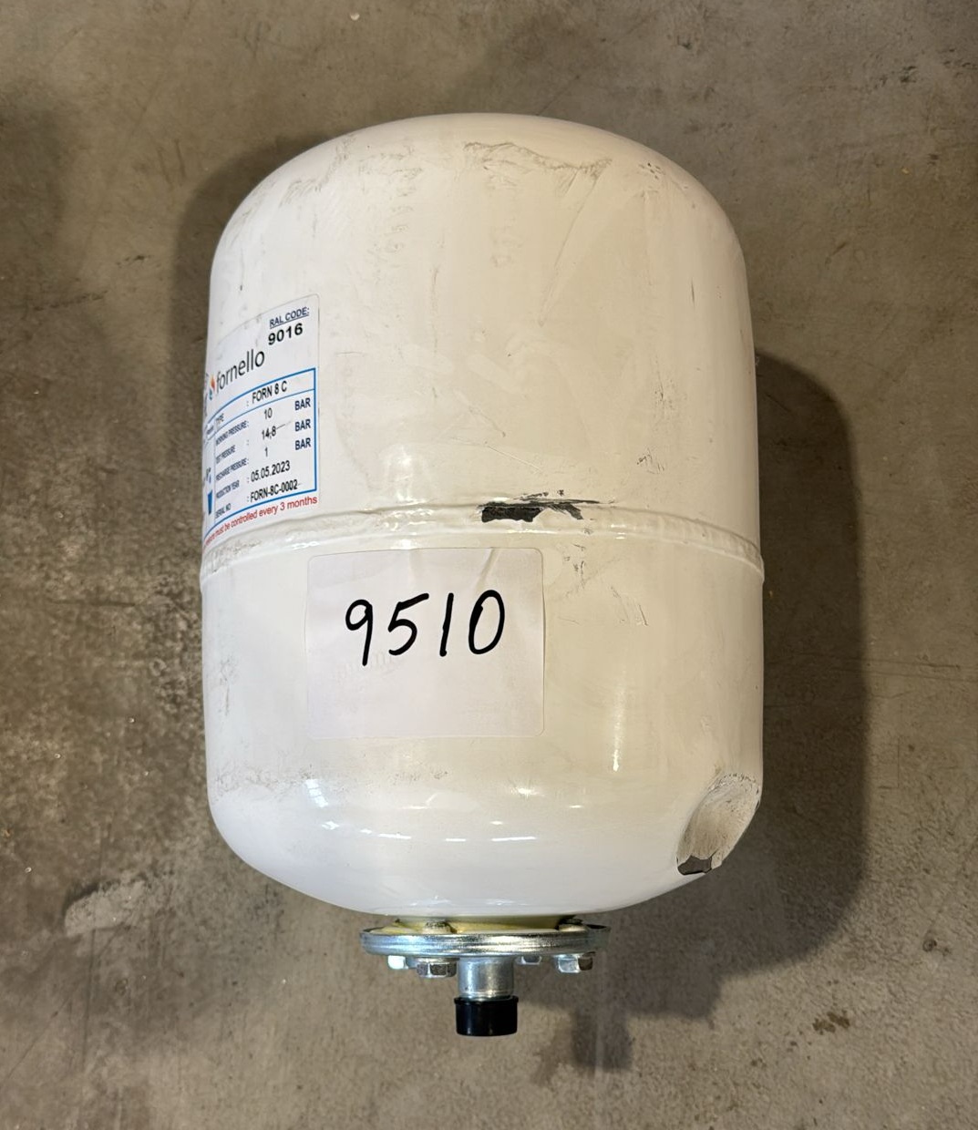 PRODUS RESIGILAT CU DEFECTE ESTETICE DAR IN PERFECTA STARE DE FUNCTIONARE 9510 !!!Vas expansiune sanitar Fornello 8 litri vertical culoare alb presiune maxima 10 bar membrana EPDM