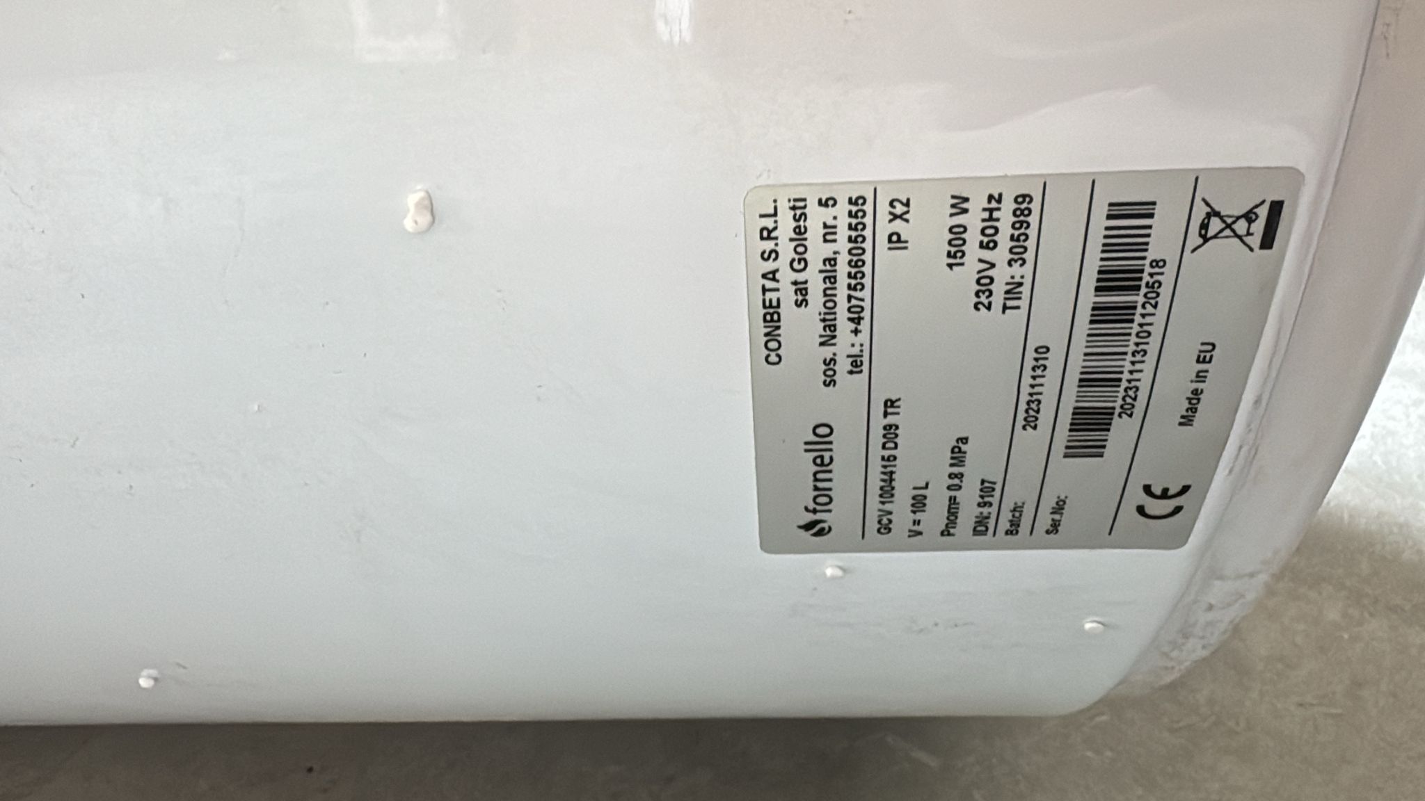 PRODUS RESIGILAT NOU IN PERFECTA STARE DE FUNCTIONARE!!! (5527) Boiler electric Fornello Optima GCV 1004415 D09 TR 100 Litri 1500 watt reglaj extern al temperaturii poliuretan expandat