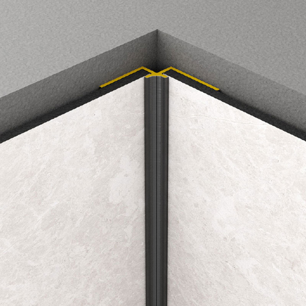 Profil de colt interior Rocko Tiles, aluminiu anodizat, negru, 2800 mm