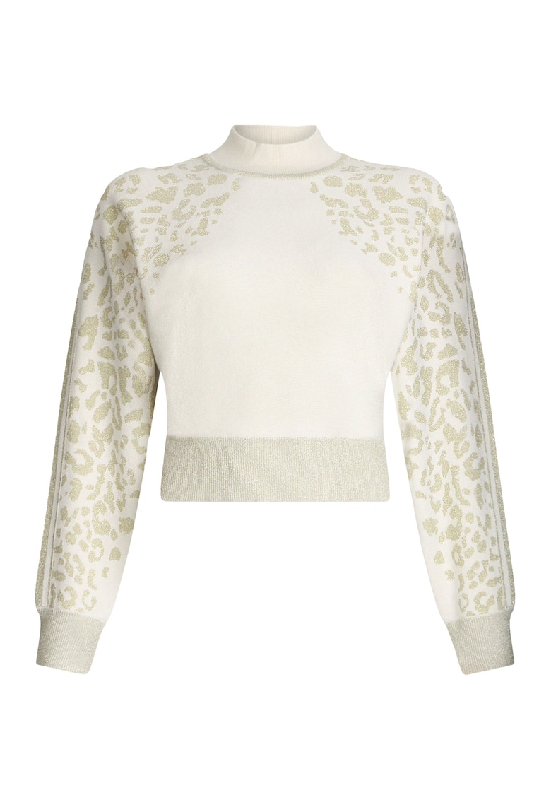 Pulover crop cu animal print - Alb/Auriu