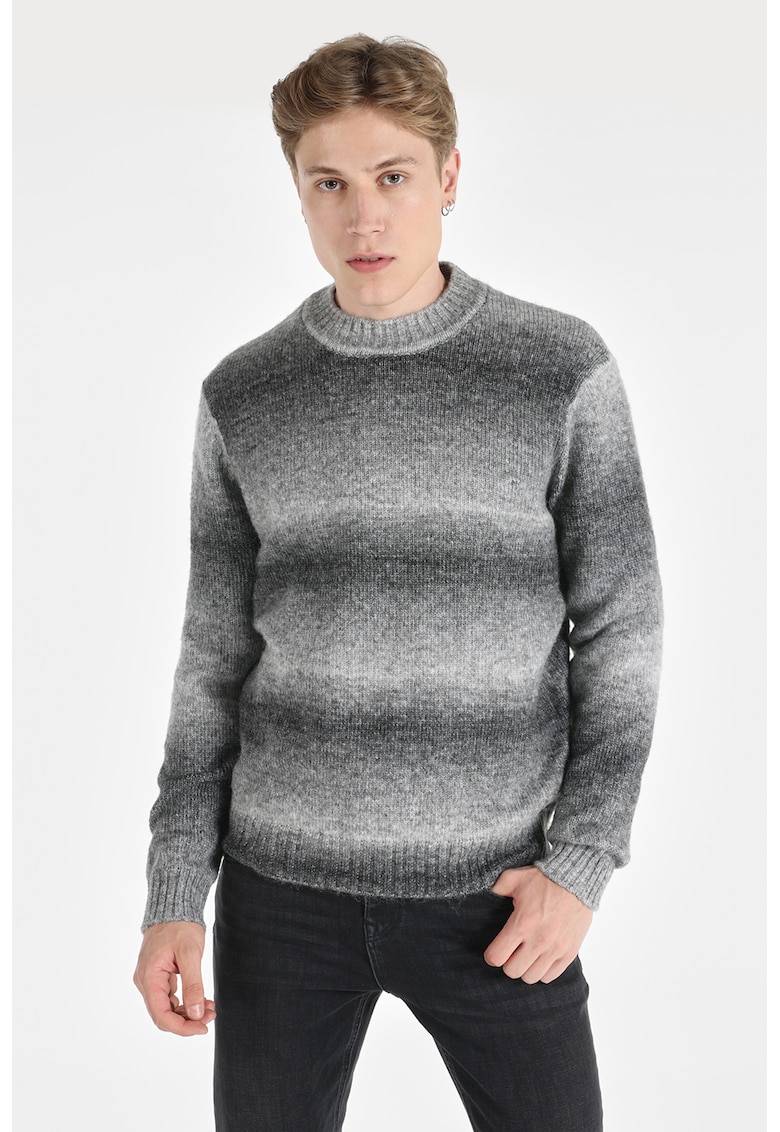 Pulover cu decolteu la baza gatului - dungi si model in degrade - Gri