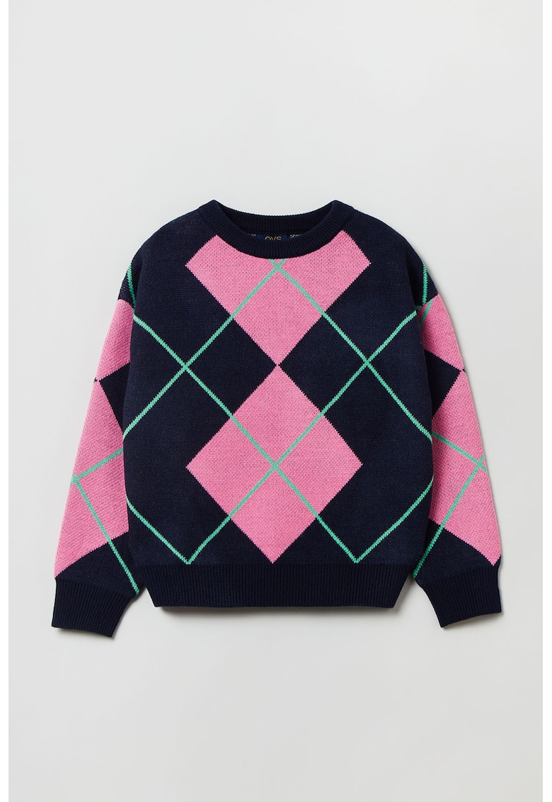 Pulover cu maneci cazute - Albastru ultramarin/Roz/Verde menta