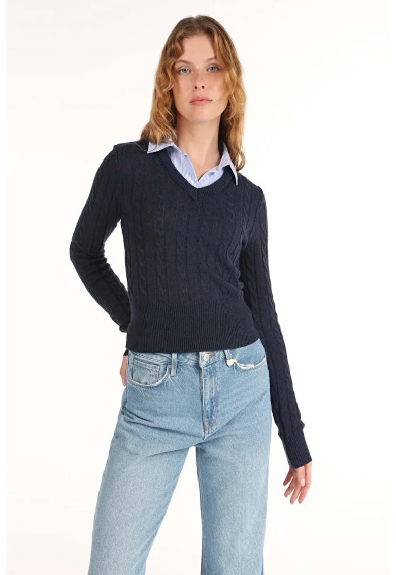 Pulover De Dama Albastru Marin Regular Fit 8683197801982