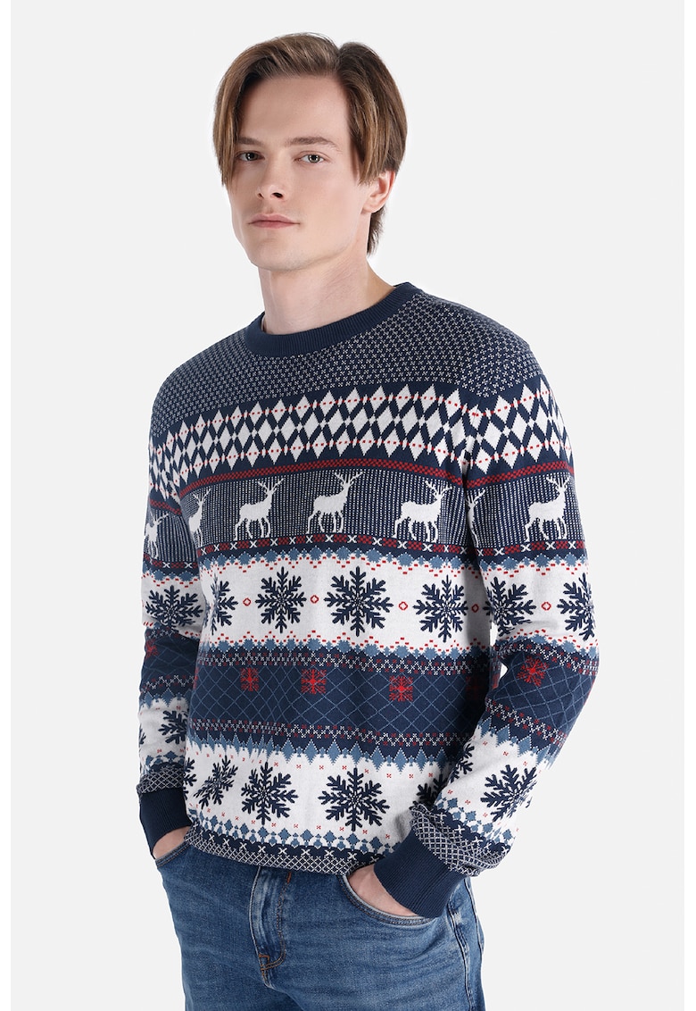 Pulover din bumbac cu decolteu la baza gatului - Rosu/Alb/Albastru